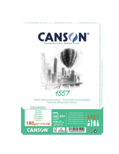 Papel Canson® 1557® es ideal para usar con todo tipo de grafito pues retiene muy bien los pigmentas y permite el sombreado ilimitado y gradación. Canson® 1557® está encolado en masa y en superficie, dotándolo de una calidad notable y haciéndolo resistente a los repetidos borrados.