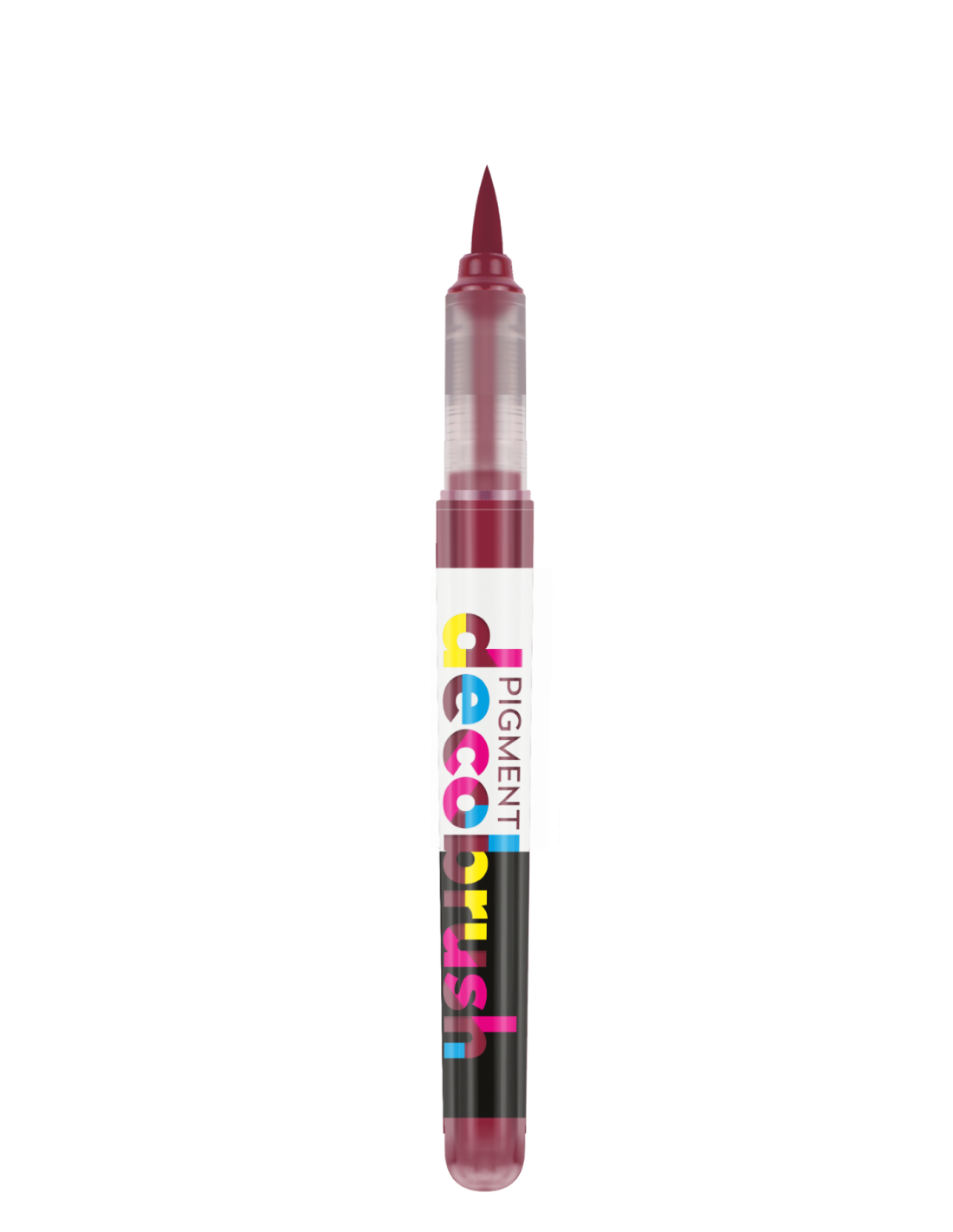 El método de uso de los rotuladores decobrush PIGMENT es similar a las pinturas acrílicas, pero atrapado en un rotulador fácil de usar con una punta de nailon flexible en forma de pincel. Su pintura opaca se puede utilizar en papel, metal, vidrio, plástico, madera, textiles y muchos otros materiales. La pintura mate opaca permite su aplicación también en superficies oscuras con técnicas aún no disponibles para otros rotuladores. Los rotuladores decobrush PIGMENT contienen 2,4 ml de pinturas acrílicas, opacas y a base de pigmentos orgánicos no tóxicos. Han sido producidos en la tecnología de "tinta líquida" al igual que nuestros otros rotuladores y gracias a eso, a diferencia de las tecnologías tradicionales, permiten el consumo de pintura en un 100%.