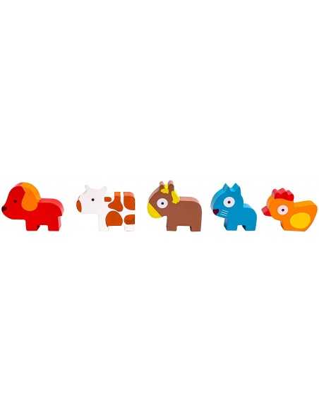 ¡Esta granja de madera si que es adorable! Contiene piezas grandes y manejables para manos pequeñas. Desarrolla la habilidad manual y la imaginación de tus pequeños mientras juega con los animalitos de madera de esta amigable granja.