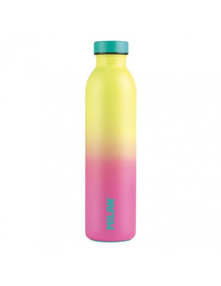 Botella isotérmica con doble pared de acero inoxidable.