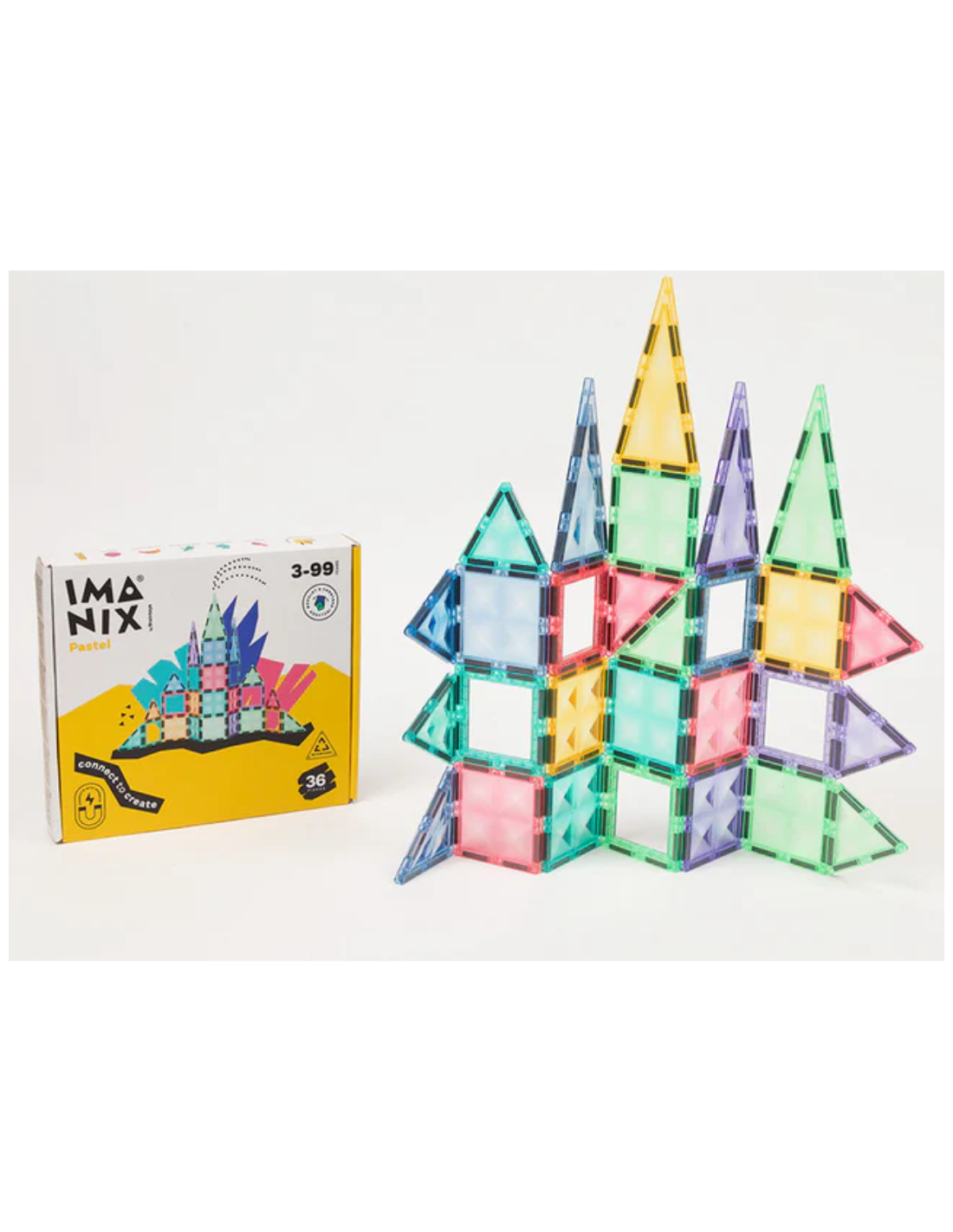 Las piezas vienen en tonos pastel y están fabricadas con plástico ABS no tóxico, libre de BPA y látex, garantizando la seguridad durante el juego.